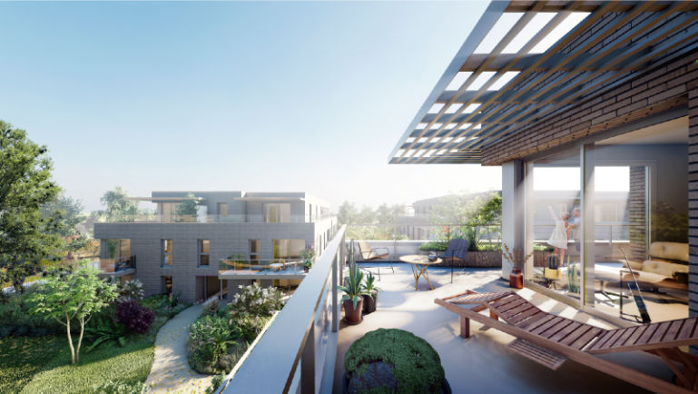 S'intégrant naturellement dans son environnement, votre résidence propose une architecture pérenne en briques et affirme son dynamisme par son jeu de volumes créant de larges espaces de vie extérieurs.